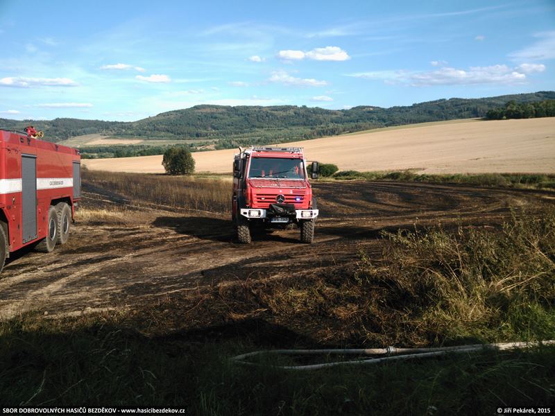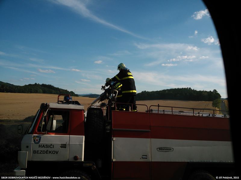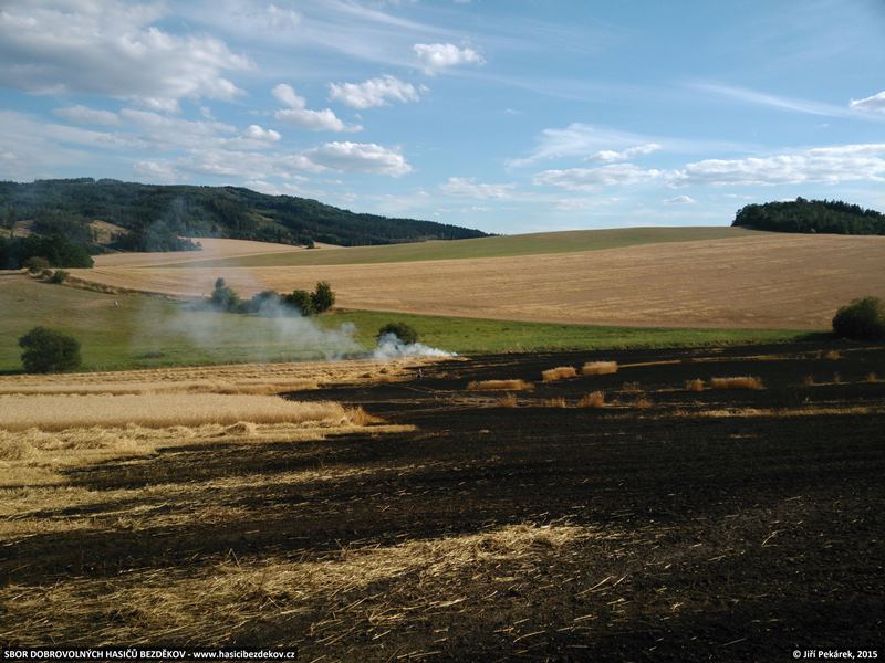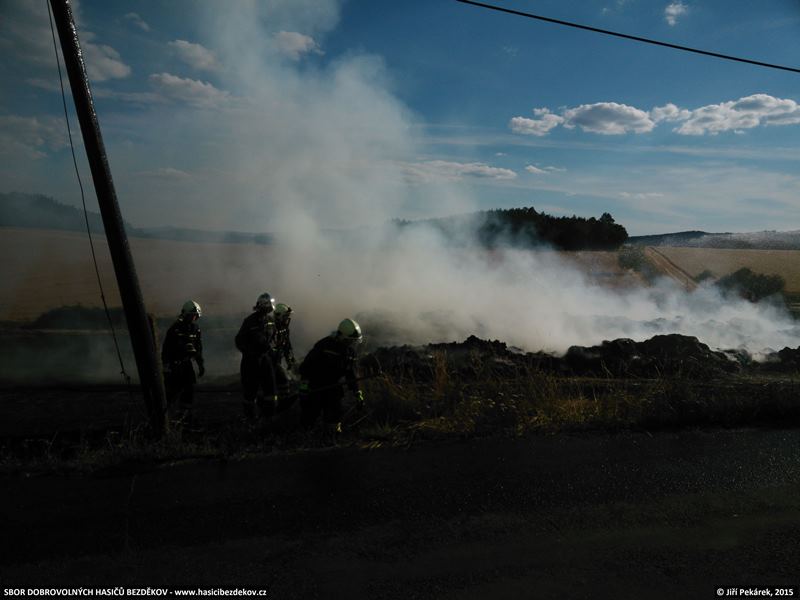 Popis: Vlivem technické závady na kombajnu došlo k požáru obilí na ploše cca 7 ha a sousedního hnojiště. Škoda byla předběžně odhadnuta na cca 350 000 Kč a hasičům se podařilo uchránit hodnoty ve výši cca 600 000 Kč. Zásahu se dále zúčastnily jednotky HZS Klatovy a dobrovolné jednotky z Bezděkova, Chudenic, Klatov, Kolovče a Poleně.