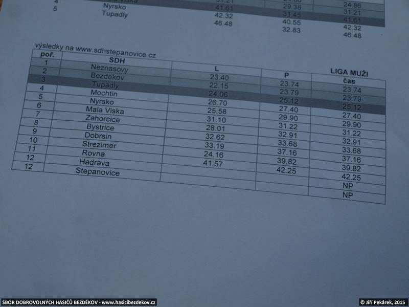 Po tomto kole je SDH Bezděkov na průběžném 6. místě.